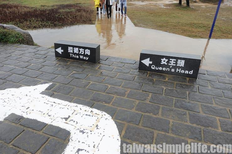 野柳地質公園の最大の見どころ、「女王頭(クイーンズヘッド)」を見るためのルートを矢印に沿って進んで行くと、